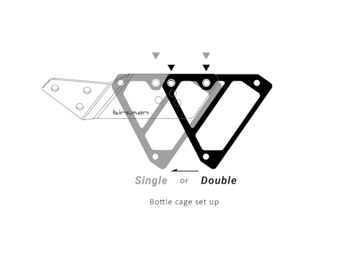 The 6061 aluminium modular structure with multiple mounting holes allows for different attachment possibilities and orientations – stow the bracket to carry one single bottle cage at the rear end; and extend the bracket to carry two bottle cages side by side.